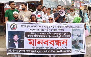 এ সময় জেলা ছাত্রলীগের সাবেক সহ-সভাপতি ইমরান হাসান ইমরান, উপ পরিবেশ সম্পাদক রাশেদুল ইসলাম রিফাত, উপ ত্রাণ সম্পাদক রুকন, উপ পাঠাগার সম্পাদক তানভীর হোসেন নাহিদসহ ছাত্রলীগ নেতা আনিসুর, আলী হোসেন শান্ত, বাপ্পি, রাকিব হাসান, রহিম রহমান, রনি, জাহিদ হাসান রিশাদ, তিতাসুর, সরল, আকাশ মাহজাবিন জিদান, তানভীর হাসান বিল্লাল, শাহিন আলম, রিয়াজ প্রমুখ উপস্থিত ছিলেন।